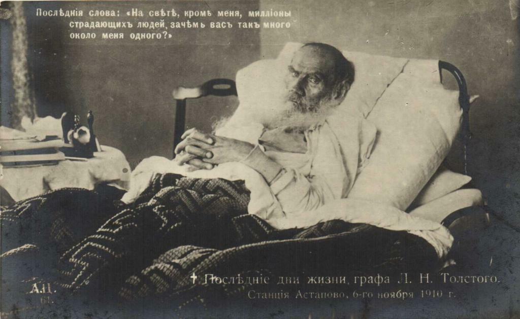 Толстой направлялся на юг России, где предполагал поселиться у кого-либо из своих знакомых крестьян. В пути он заболел воспалением легких и вынужден был сойти с поезда на станции Астапово Рязано-Уральской железной дороги. В доме начальника станции И. И.